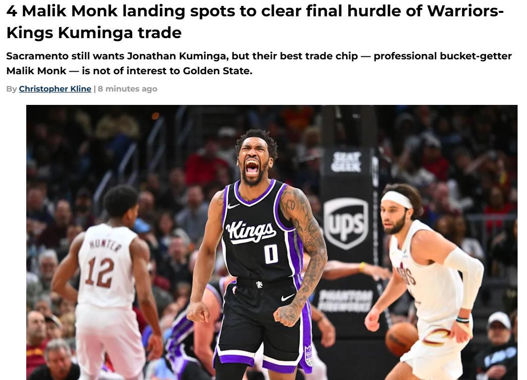 第二点则是勇士队无意得到蒙克,后者是国王队一直试图在库明加交易中送出的球员,希望打包蒙克与一枚受保护首轮签追求库明加。